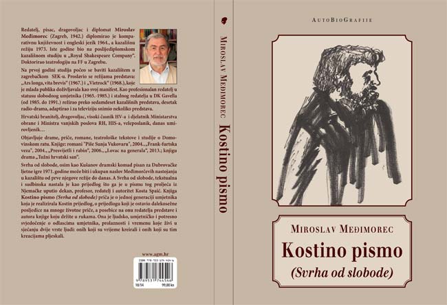 Oprostite na svojevrsnom uzimanju prostora kako bih progovorio, ne o sebi, već o događaju kojemu sam ja slučajno bio glavni akter - dan ranije u petak 20. veljače u 18 sati na istom mjestu predstavljena je moja knjiga „Kostino pismo"(Svrha od slobode), ponovno pred prepunom dvoranom, uz sudjelovanje glumaca iz izvorne predstave „Svrha od slobode" i izvođenje dijelova spomenute predstave. U dva dana knjiga o kultnoj predstavi s dubrovačkih Ljetnih igara 1971., o generaciji glumaca koja je ni kriva ni dužna „izgorila" u političkoj čistki nakon Karađorđeva, o „olovnim godinama" i kazalištu poslije „hrvatskog proljeća", o politici i ideologiji koja se stalno miješala u našu strast i životno opredjeljenje, o životu i smrti glumaca umjetnika koji su željeli više od politike i života, i predstava po tekstu koji sam napisao i onda ga u kazalištu na rubu Hrvatske , u Vinkovcima u kazalištu „Joza Ivakić" i režirao.