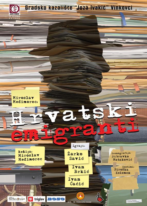 „Hrvatski emigranti" su svojevrsna inačica i podsjećanje na sjajan tekst Slawomira Mrožeka koji su početkom sedamdesetih u režiji Tomislava Radića na sceni Teatra ITD veličanstveno odigrali Fabijan Šovagović i Vanja Drach, usto su i hrvatski izraz te velike teme iz vremena Hladnog rata, bijega i odljeva zdrave ljudske supstance s komunističkom diktaturom porobljenog i osiromašenog istoka prema dinamičnom i razvijenom zapadu Europe.
